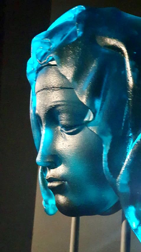 Ms. Duggan’s glass sculptures of the face of Mother Mary were made from a mold she was able to obtain from ones that had been made previously in silver and bronze as authorized by the Vatican in Italy.